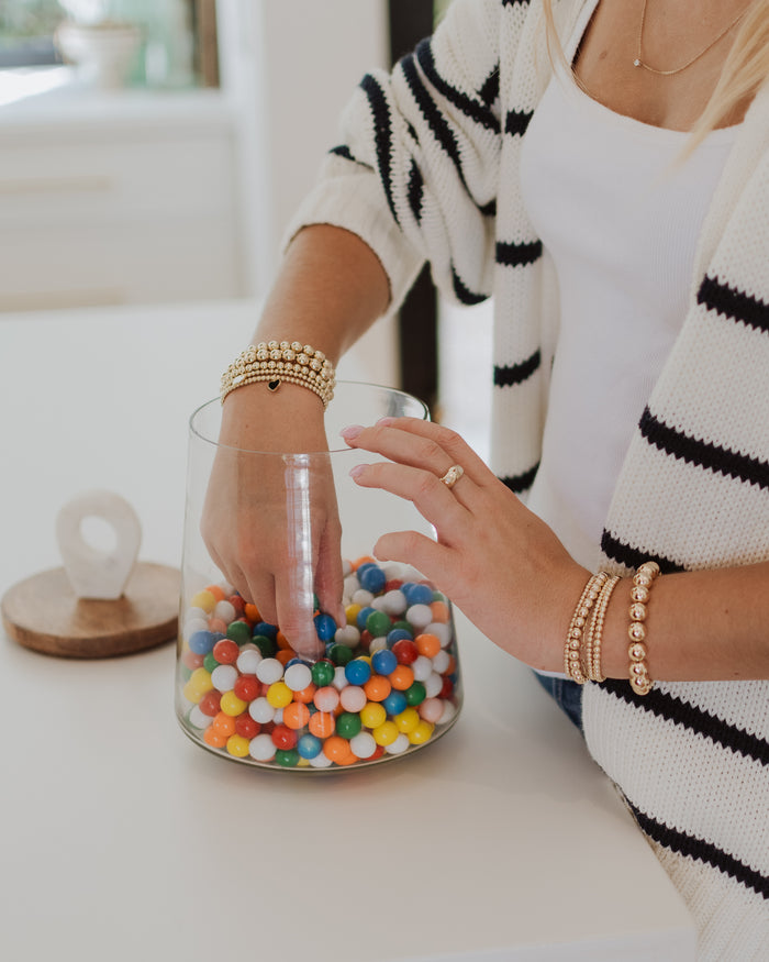 {"id":1505112457278,"title":"2mm 14k Yellow Gold Filled Bead Bracelet","handle":"classic-bracelet-14k-yellow-gold-filled-2mm-beads","description":"\u003cmeta charset=\"utf-8\"\u003e\u003cspan data-mce-fragment=\"1\"\u003eTo find your \u003c\/span\u003e\u003cspan data-mce-fragment=\"1\"\u003ebracelet size, measure wrist tightly and add 1\/2\" to measurement.\u003c\/span\u003e","published_at":"2018-10-26T21:55:56-07:00","created_at":"2018-10-26T22:19:58-07:00","vendor":"Glitter for Breakfast","type":"Bracelet","tags":["14k gold filled","bracelet","classic","Gold","gold bead bracelets","gold filled","stretch bead bracelet","stretch bead bracelets","stretch bracelet","yellow gold"],"price":5500,"price_min":5500,"price_max":5500,"available":true,"price_varies":false,"compare_at_price":null,"compare_at_price_min":0,"compare_at_price_max":0,"compare_at_price_varies":false,"variants":[{"id":32205498908734,"title":"Please select bracelet size","option1":"Please select bracelet size","option2":null,"option3":null,"sku":"","requires_shipping":true,"taxable":true,"featured_image":null,"available":true,"name":"2mm 14k Yellow Gold Filled Bead Bracelet - Please select bracelet size","public_title":"Please select bracelet size","options":["Please select bracelet size"],"price":5500,"weight":0,"compare_at_price":null,"inventory_quantity":28,"inventory_management":"shopify","inventory_policy":"deny","barcode":"","requires_selling_plan":false,"selling_plan_allocations":[]},{"id":13555380912190,"title":"5.75”","option1":"5.75”","option2":null,"option3":null,"sku":"","requires_shipping":true,"taxable":true,"featured_image":null,"available":true,"name":"2mm 14k Yellow Gold Filled Bead Bracelet - 5.75”","public_title":"5.75”","options":["5.75”"],"price":5500,"weight":0,"compare_at_price":null,"inventory_quantity":28,"inventory_management":"shopify","inventory_policy":"deny","barcode":"","requires_selling_plan":false,"selling_plan_allocations":[]},{"id":13555380944958,"title":"6”","option1":"6”","option2":null,"option3":null,"sku":"","requires_shipping":true,"taxable":true,"featured_image":null,"available":true,"name":"2mm 14k Yellow Gold Filled Bead Bracelet - 6”","public_title":"6”","options":["6”"],"price":5500,"weight":0,"compare_at_price":null,"inventory_quantity":28,"inventory_management":"shopify","inventory_policy":"deny","barcode":"","requires_selling_plan":false,"selling_plan_allocations":[]},{"id":13555380977726,"title":"6.25”","option1":"6.25”","option2":null,"option3":null,"sku":"","requires_shipping":true,"taxable":true,"featured_image":null,"available":true,"name":"2mm 14k Yellow Gold Filled Bead Bracelet - 6.25”","public_title":"6.25”","options":["6.25”"],"price":5500,"weight":0,"compare_at_price":null,"inventory_quantity":28,"inventory_management":"shopify","inventory_policy":"deny","barcode":"","requires_selling_plan":false,"selling_plan_allocations":[]},{"id":13555381010494,"title":"6.5”","option1":"6.5”","option2":null,"option3":null,"sku":"","requires_shipping":true,"taxable":true,"featured_image":null,"available":true,"name":"2mm 14k Yellow Gold Filled Bead Bracelet - 6.5”","public_title":"6.5”","options":["6.5”"],"price":5500,"weight":0,"compare_at_price":null,"inventory_quantity":28,"inventory_management":"shopify","inventory_policy":"deny","barcode":"","requires_selling_plan":false,"selling_plan_allocations":[]},{"id":13555381076030,"title":"6.75”","option1":"6.75”","option2":null,"option3":null,"sku":"","requires_shipping":true,"taxable":true,"featured_image":null,"available":true,"name":"2mm 14k Yellow Gold Filled Bead Bracelet - 6.75”","public_title":"6.75”","options":["6.75”"],"price":5500,"weight":0,"compare_at_price":null,"inventory_quantity":28,"inventory_management":"shopify","inventory_policy":"deny","barcode":"","requires_selling_plan":false,"selling_plan_allocations":[]},{"id":13555381108798,"title":"7”","option1":"7”","option2":null,"option3":null,"sku":"","requires_shipping":true,"taxable":true,"featured_image":null,"available":true,"name":"2mm 14k Yellow Gold Filled Bead Bracelet - 7”","public_title":"7”","options":["7”"],"price":5500,"weight":0,"compare_at_price":null,"inventory_quantity":28,"inventory_management":"shopify","inventory_policy":"deny","barcode":"","requires_selling_plan":false,"selling_plan_allocations":[]},{"id":13555381141566,"title":"7.25”","option1":"7.25”","option2":null,"option3":null,"sku":"","requires_shipping":true,"taxable":true,"featured_image":null,"available":true,"name":"2mm 14k Yellow Gold Filled Bead Bracelet - 7.25”","public_title":"7.25”","options":["7.25”"],"price":5500,"weight":0,"compare_at_price":null,"inventory_quantity":28,"inventory_management":"shopify","inventory_policy":"deny","barcode":"","requires_selling_plan":false,"selling_plan_allocations":[]},{"id":13555381174334,"title":"7.5”","option1":"7.5”","option2":null,"option3":null,"sku":"","requires_shipping":true,"taxable":true,"featured_image":null,"available":true,"name":"2mm 14k Yellow Gold Filled Bead Bracelet - 7.5”","public_title":"7.5”","options":["7.5”"],"price":5500,"weight":0,"compare_at_price":null,"inventory_quantity":28,"inventory_management":"shopify","inventory_policy":"deny","barcode":"","requires_selling_plan":false,"selling_plan_allocations":[]},{"id":31679047467070,"title":"8\"","option1":"8\"","option2":null,"option3":null,"sku":"","requires_shipping":true,"taxable":true,"featured_image":null,"available":true,"name":"2mm 14k Yellow Gold Filled Bead Bracelet - 8\"","public_title":"8\"","options":["8\""],"price":5500,"weight":0,"compare_at_price":null,"inventory_quantity":28,"inventory_management":"shopify","inventory_policy":"deny","barcode":"","requires_selling_plan":false,"selling_plan_allocations":[]}],"images":["\/\/shopglitterforbreakfast.com\/cdn\/shop\/products\/YellowGoldBracelet-2mm-Wrist.jpg?v=1695142055","\/\/shopglitterforbreakfast.com\/cdn\/shop\/products\/GoldBracelet
