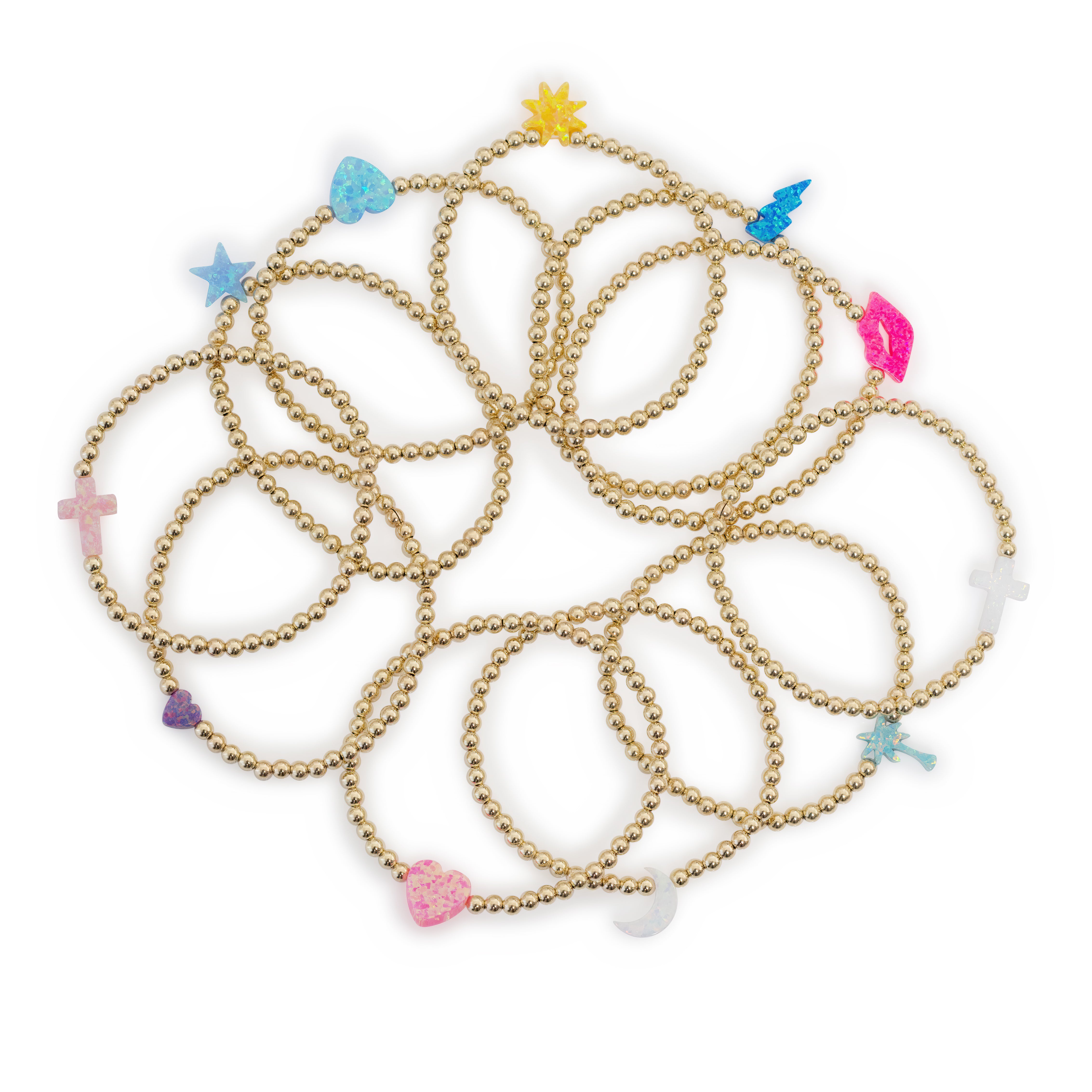 Choose a colorful opalite charm that you love to add to a 3mm bead bracelet and mix it in with your classic bead bracelets. Not all charms pictured are available and not all charms are pictured.