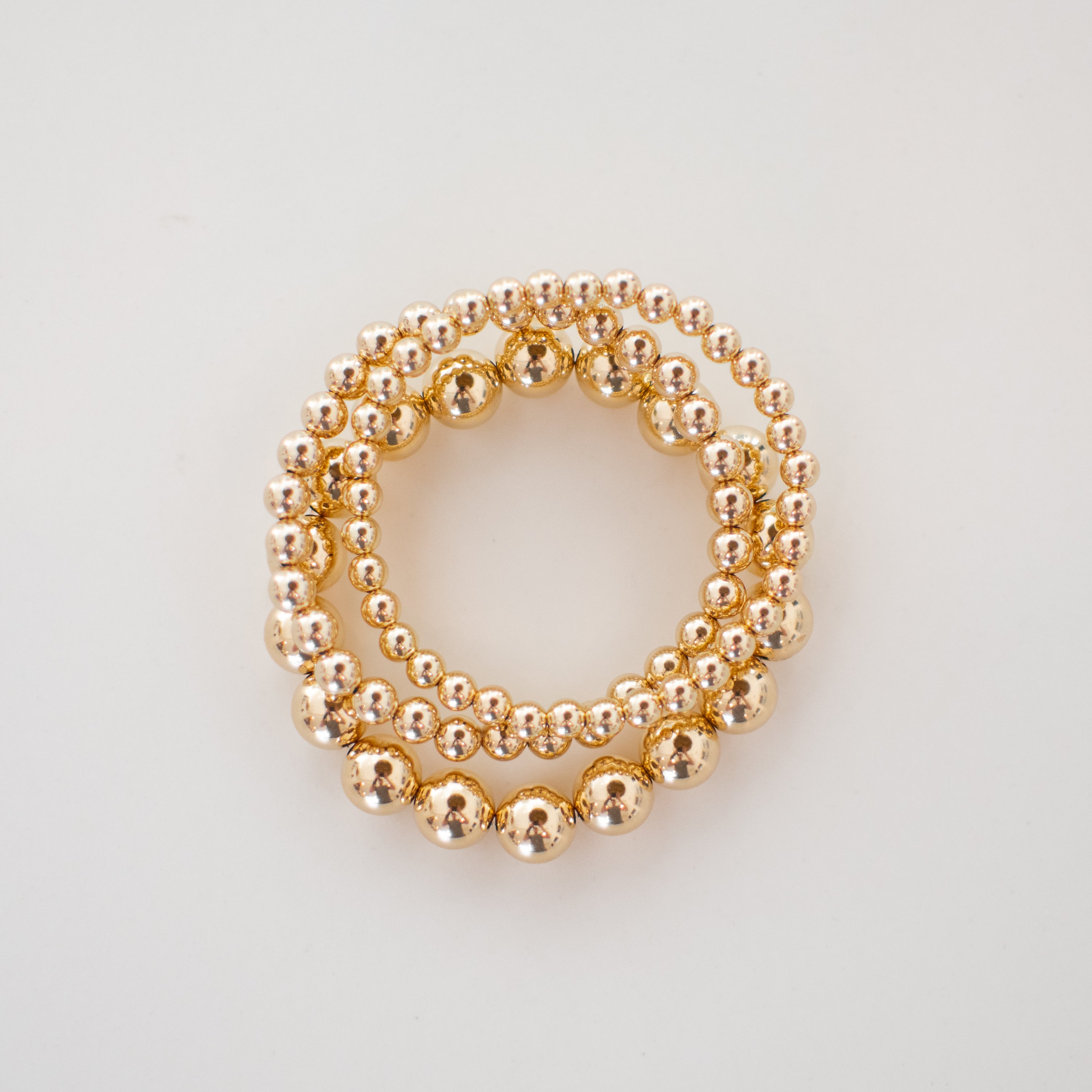 A perfect range of bead sizes that pairs two medium-sized bead bracelets with our largest, including a 5mm, 6mm and our largest 10mm bead bracelet, to create a stack that complements your current everyday jewelry and maximizes impact.